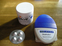 ちなみに、左の写真は小児科で処方されたインフルエンザの薬「リレンザ」です。飲み薬ではなく、粉末の薬を専用の道具で吸入して使います。初めて見る形状と方法に最初は戸惑いましたが、玩具のようでかえって興味をひかれたのも事実です。