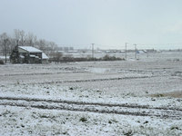 今朝、今年初の積雪となりました。右の写真は委員会出席前に撮った月形町市南地区の風景です。