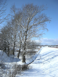 左の写真は須部都川の堤防近くの樹。樹の持つ雰囲気に誘われてシャッターを切りました。午前10時の陽光が爽やかな雰囲気を醸し出していました。