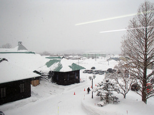 写真は第1日目(3月5日/水)の昼に撮影したものです。この日は一日中、春のべたついた雪がちらついていました。日中-1℃まで気温が上がったので、月形樺戸博物館の屋根雪がちょうどこの瞬間、落ちました。