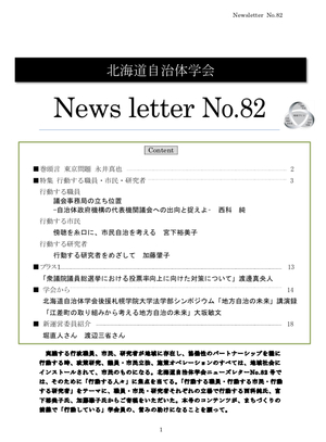 なお、2月26日に「北海道自治体学会ニュースレターNo.82」を発行しました。今回の特集は「行動する職員・市民・研究者」です。私も「行動する市民/傍聴を糸口に、市民自治を考える」を寄稿しています。他にも興味深い内容がありますので、ぜひ読んでいただきたいです。